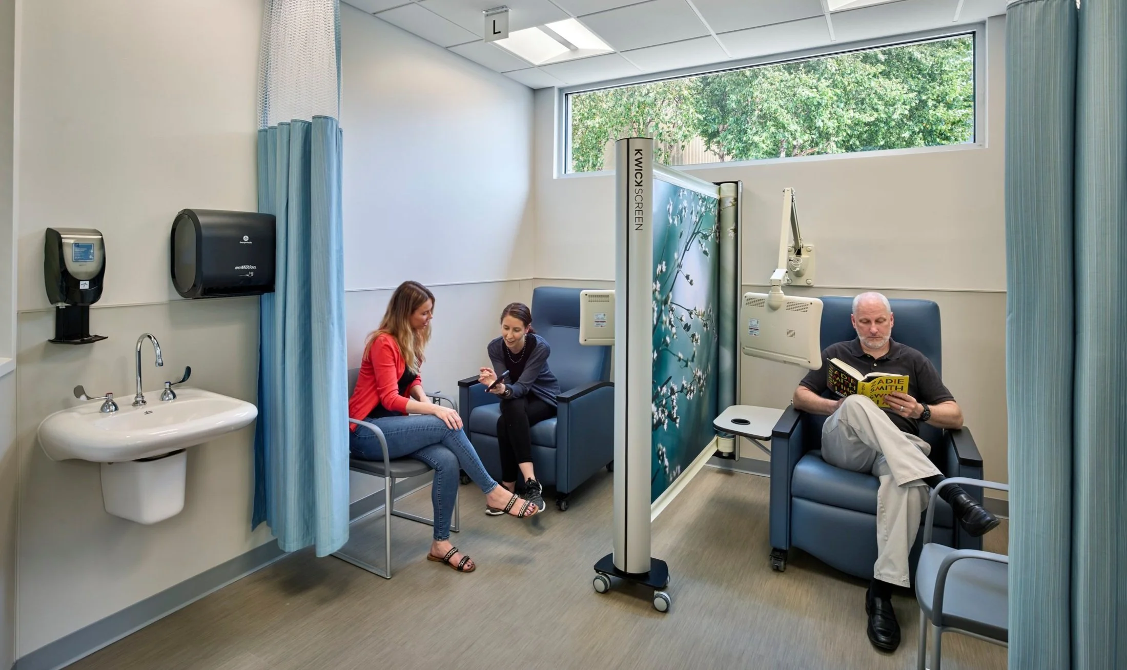 KwickScreens can be printed on both sides of the inner panel with different artwork. Most of the artwork in our Image Catalogue is nature-based as this has been proven to improve patient outcomes by reducing stress and pain. In addition, we provide Wall and Window Art as well as Sky Tiles to increase the welcoming feel of the treatment space. Finally, we offer Wayfinding Signage to minimise confusion and disorientation. These small touches can make a world of difference for dementia patients.